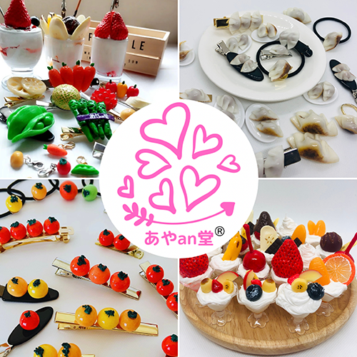 樹脂粘土で手作りした食べ物モチーフのアクセサリーやヘアアクセサリー 、ミニチュアパフェ。甘くて思わず笑顔になる可愛い世界をお届けします。