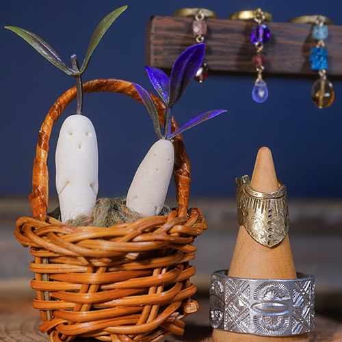 金属から叩いて作る彫金アクセサリー。メンズ向け・大きいサイズもあり。我が家のマスコット「みんなの大根」とお待ちしてます!