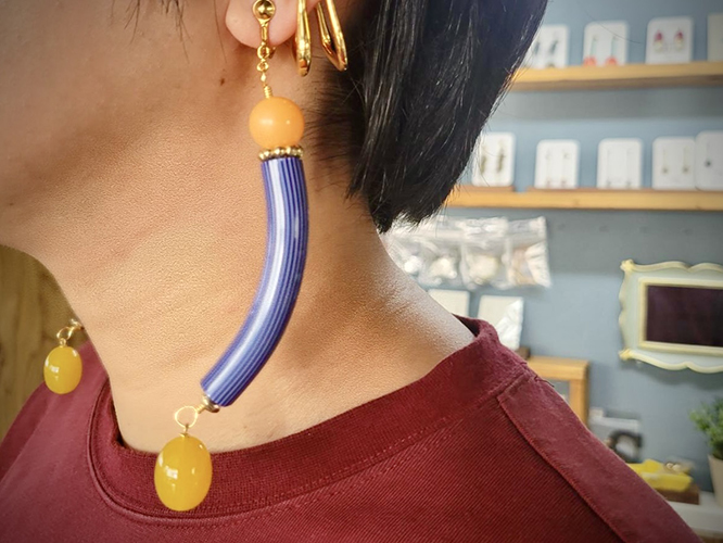 消しゴムはんこを彫ったり、カラフルなアクセサリーを作ったり、お客様がしっくりくるものを目指して、色んな色で色々しています。