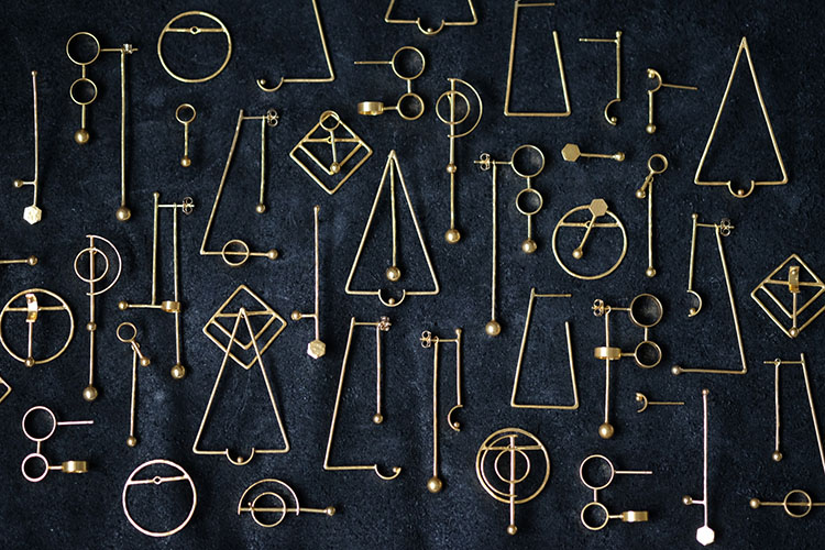 金属や鹿の毛皮を使用し装身具を制作がしています。神代文字から形作ったピアスは文字から言葉を作るように好きな形を見つけて頂きたいです。
