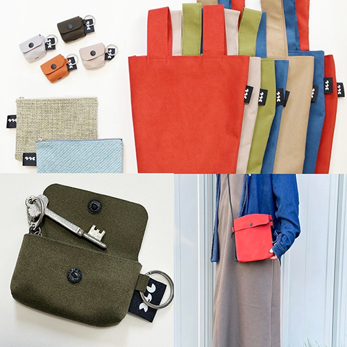家具の縫製工場で出る端材でバッグやポーチを制作しています。捨てられるはずだったものに手をかけてこれからもつづくように。