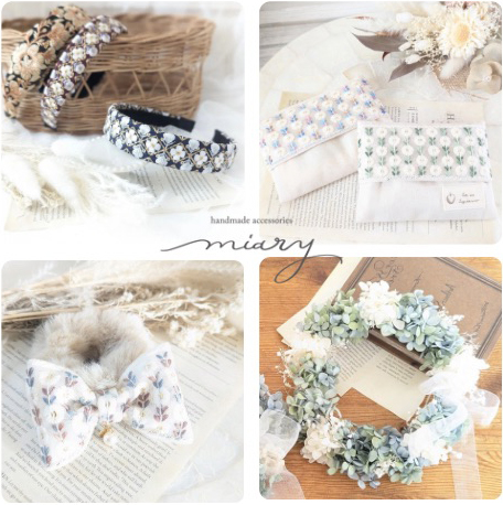 刺繍リボンの小物や髪飾りとドライフラワーアレンジ