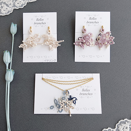 レース糸とビーズで丁寧に編み上げる草花モチーフのアクセサリー ふんわりとした風合いと軽さが魅力 レース糸はナチュラルな色味の上質なものを厳選
