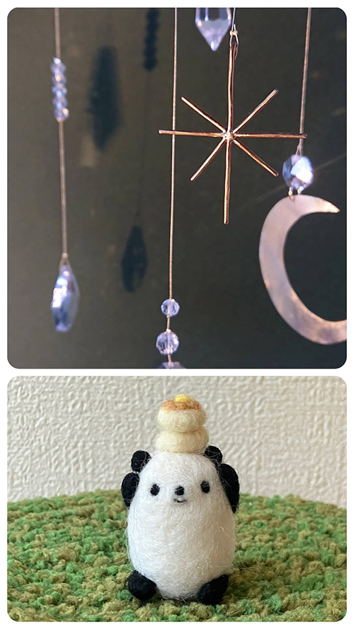 Quatreのアクセサリーと真鍮を使ったモビール、studio_bの羊毛フェルト雑貨の合同ブースです。