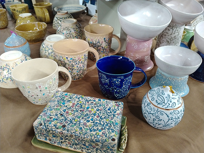イッチンを用いた陶器の食器やアクセサリー、小物などをお楽しみください。