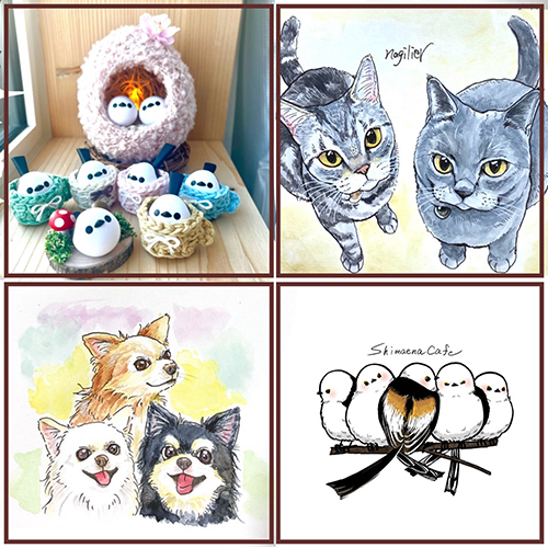 シマエナガ雑貨を作っています。耐水性軽量樹脂粘土のシマエナガやオリジナルイラストのグッズを展開。ペットのお写真から似顔絵を描きます。