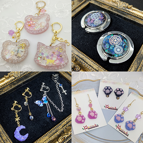 レジンや布、毛糸などを用いて作る可愛いくてバラエティ豊かなアクセサリー&小物と星・月・空想系アクセサリー