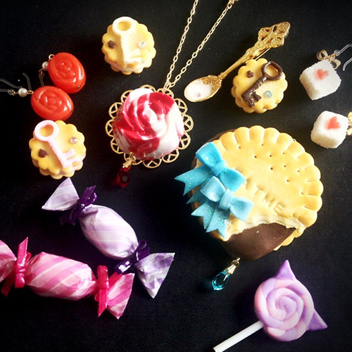粘土でできたフェイクスイーツ、フェイクフードのアクセサリー、ドールのごはん作ってます