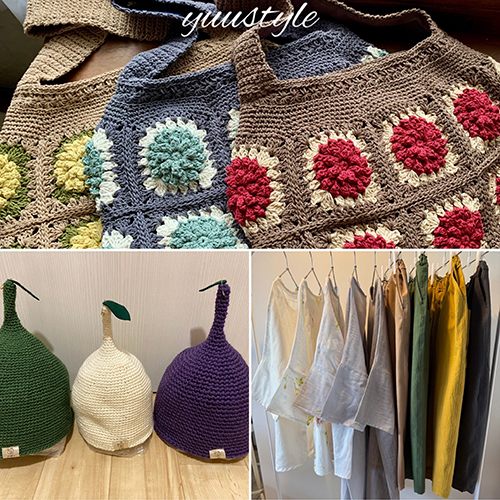丁寧に仕上げたファッションアイテムと編み物雑貨