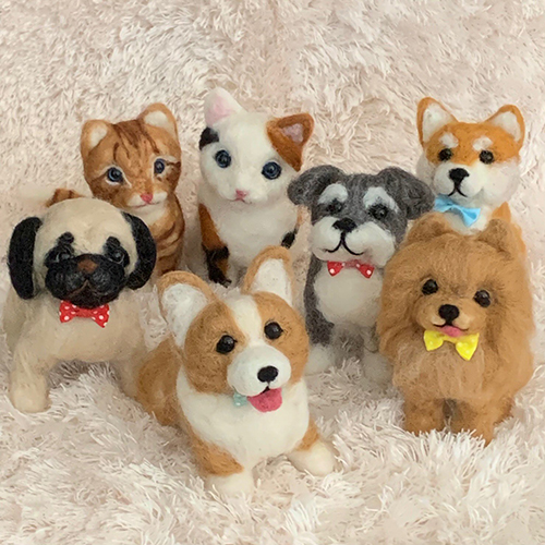 羊毛フェルトで作った犬やねこ等の可愛い動物たち。皆さまに「ほわほわ~」な手触りの作品を楽しんでいただけたら嬉しいです。