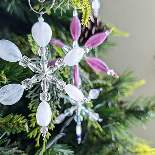 輸入ワイヤーとビーズで作る雪の結晶。ミュンヘンクリスマス市でもご好評いただいているオーナメントで、プチギフトにもぴったりです❄