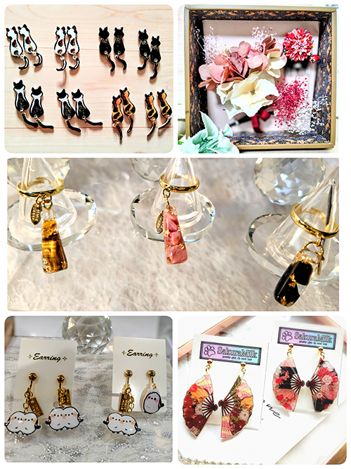 つまみ細工髪飾りや帯飾り、和洋どちらとも合うイヤリングやピアス
