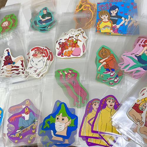 個性満載のイラストでステッカーからキーホルダーなど沢山グッズを販売します!!
