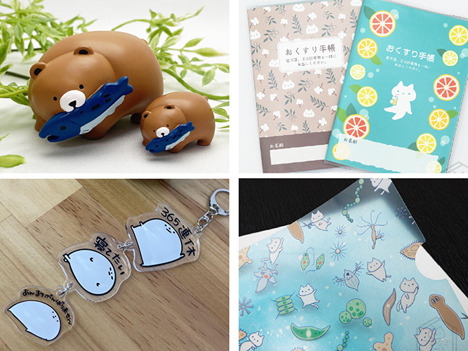 『アルケミノート』Snかすてらと『ゴトウマキエ』の合同出展。理科ねこ、もちのきもち、ひぐまる等のキャラクターグッズ販売。