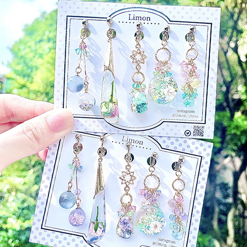 染め花とクリスタルガラス、描いたレジンで彩るアクセサリー