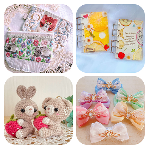 レジン&ハーバリウム、布もの、リボン、編み物の4作家の『可愛い♡』が集まりました!