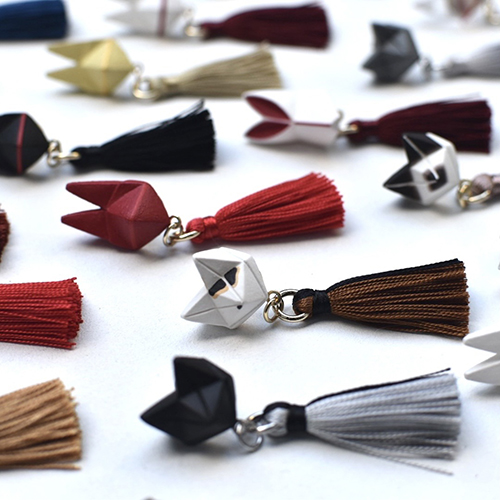 狐など古くから日本に馴染み深い動物や植物をイメージして、折り紙で折ったような造形のアクセサリーを作っています。