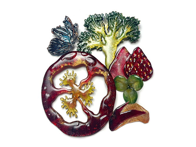 プラ板造形を用い、半立体アート作品を手掛けます。 断面をモチーフにアクセサリーを制作したり、近年では蝶や葉脈などを題材にアート作品に挑戦中。