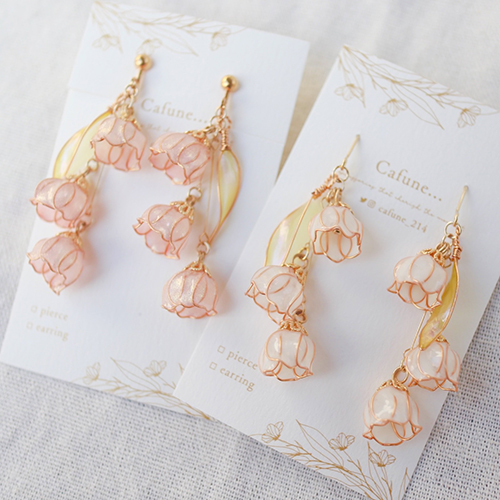 春の花々を、花びら一枚ずつ丁寧に仕立てたワイヤーアクセサリー。 春の一瞬を切りとるアクセサリーをお届けします。