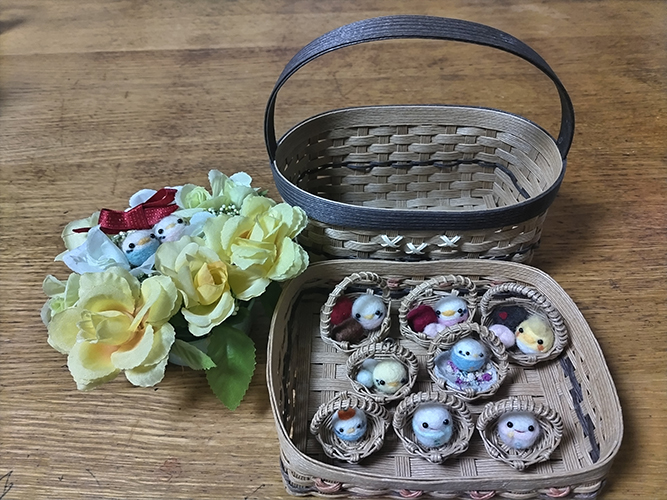 セキセイインコを中心とした羊毛ストラップ販売☆クラフトあみかごに羊毛をのせたインテリアや販売もしています♡