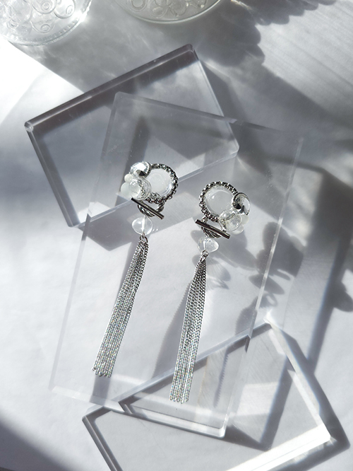 ガラスやシェル・天然石を使用して透明感あるアクセサリーを作成しています。 金具はアレルギー対応品を使用しております。