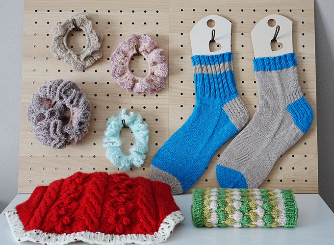 編み物小物やアクセサリー、雑貨を色々ご用意しております!