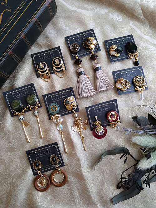 主にヴィンテージボタンを使い、アンティーク感あるデザインのアクセサリーをお作りしております。