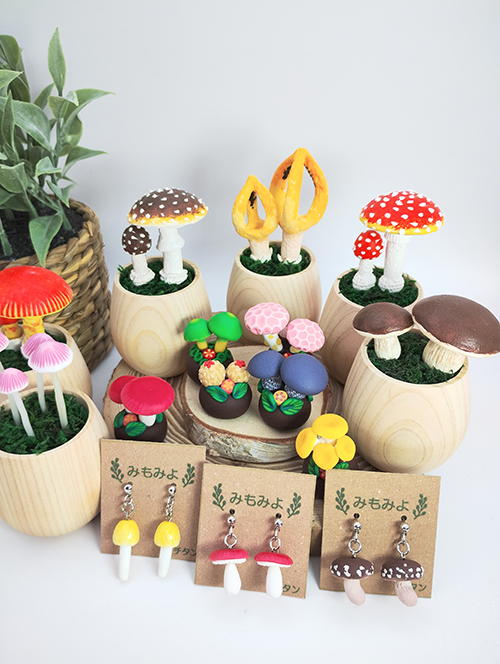 森で摘んできたかわいいきのこを飾るように。リアルでちょっとかわいいきのこのフィギュアやアクセサリーです。