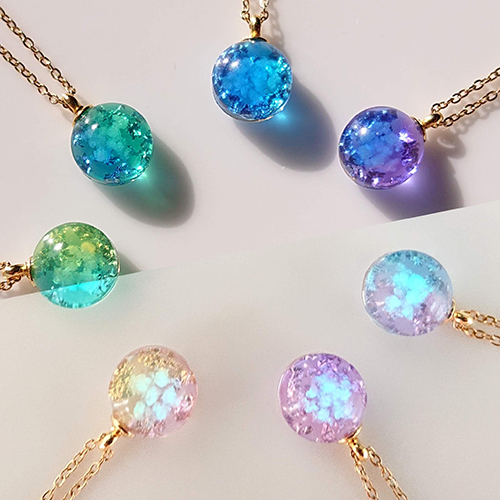 空、星などをモチーフにした蓄光レジンアクセサリー。ステンレス、 チタンなど低アレルギーで錆びにくく、高品質な金属を使用して制作してます。