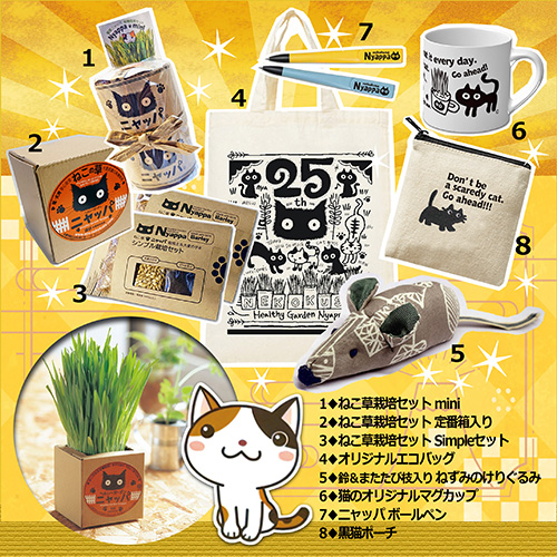 ねこ草栽培セットとオリジナル猫グッズの販売。すべての猫ちゃんが健康で幸せでありますように。