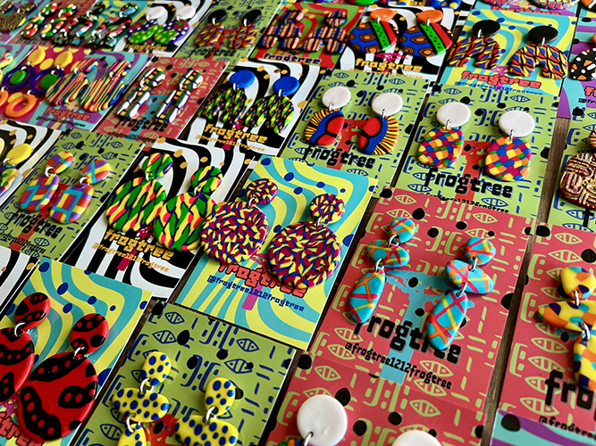 ポリマークレイのカラフルな個性派アクセサリー。ビタミンカラーで元気になれます!!