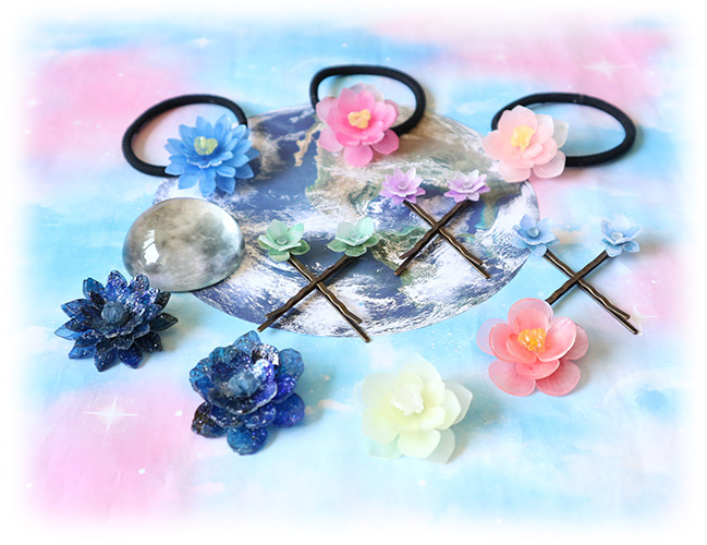 宇宙とお花をモチーフにプラバン×レジンでアクセサリーや雑貨を作っています