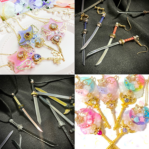 ゆめかわいい魔法少女アクセサリーと、武器モチーフのアクセサリー