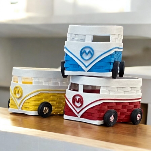 カラフルなクラフトバンドを使って、バスや働く車を作っています。