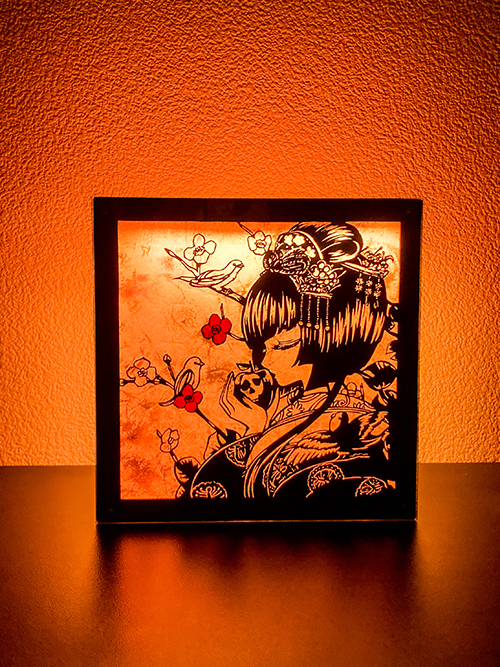 切り絵の和紙灯りと紙花アクセサリー。 一枚一枚手で切り出し、光と紙の表情を大切に制作する一点もの。
