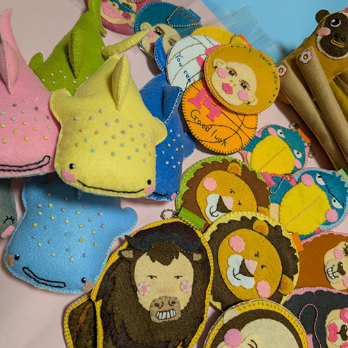 1点物のデザインで名札やチャーム・ままごと等をフェルトで作っています。ご覧ください。