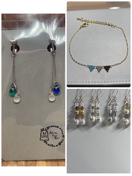 ビーズでアクセサリーを作ってます。主にブレスレット、ピアス、イヤリングを作ってます。