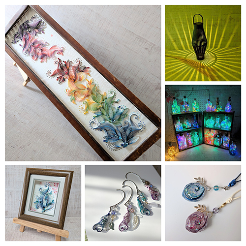 村ママ ペーパークイリングの額縁ペーパーのアクセサリー 330工房 ソーラーランタン USB充電のお部屋ライト他