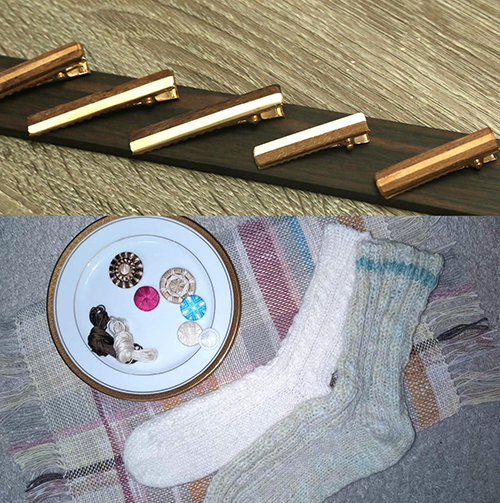 木の風合いを活かしたアクセサリーや雑貨。手紡ぎ糸、編み物や織物などの手芸品。