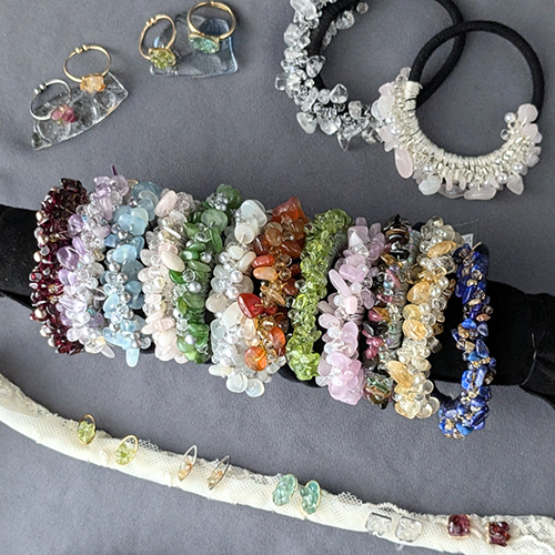 ふぞろいな天然石とビーズを組み合わせたシュシュをメインに、天然石とビーズのアクセサリーを制作・販売しています。