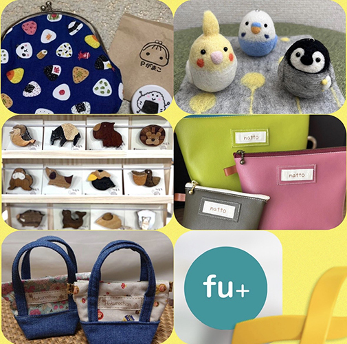 羊毛フェルト、木工アクセサリー、がま口、布雑貨、編み物など、思わず手に取りたくなる雑貨たち。可愛いものが並び、見るだけで幸せになれる空間です