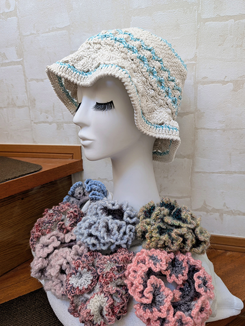 大きなトートバッグから小物入れやかぎ針編みのバッグや帽子を作っています
