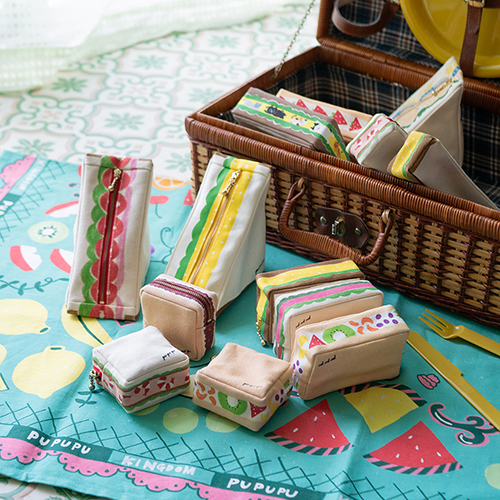 思わず「ぷぷぷ」と笑っちゃう、使うのが楽しくなる布雑貨を作ってます。カラフル賑やかな生地は全てオリジナル、店主の大好物な食べ物を描いてます。