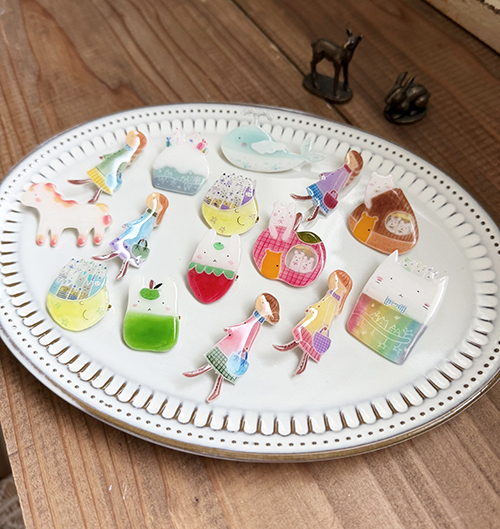 手描きのゆるふわイラストでオリジナルのブローチなどの雑貨を作っています。