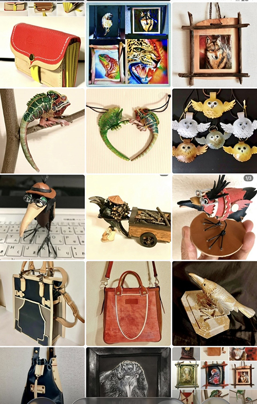 小さな動物や、立体的な作品まで革で作り上げてます。