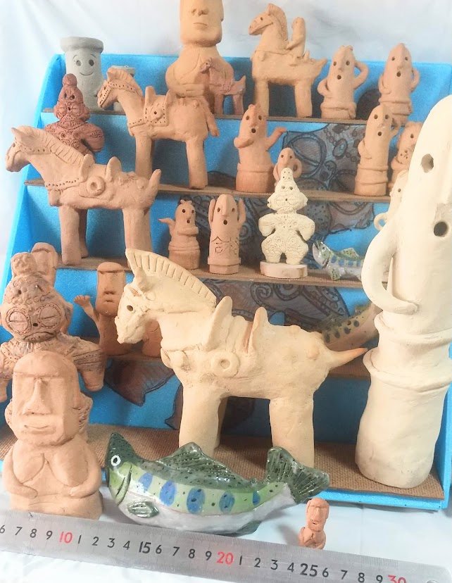 埴輪や川魚等の陶芸作品(置物、マグネット等)