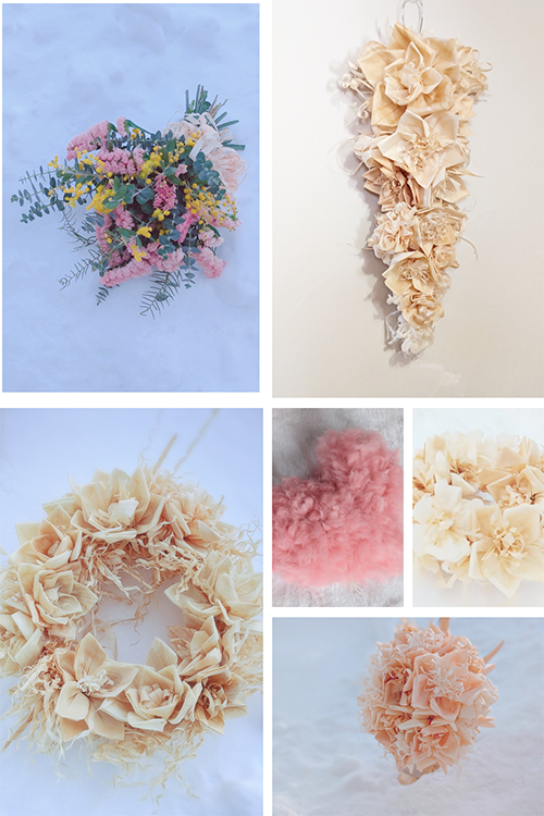 国産檜とドライフラワーと羊毛インテリアで癒し空間をお届けします