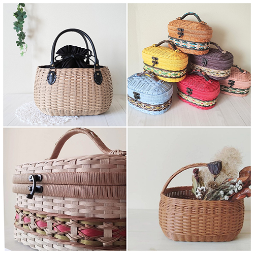 紙バンドでヒトクセもフタクセもあるかごバッグや飾るだけでもかわいいバスケットなどを一つ一つ手作業で製作しています