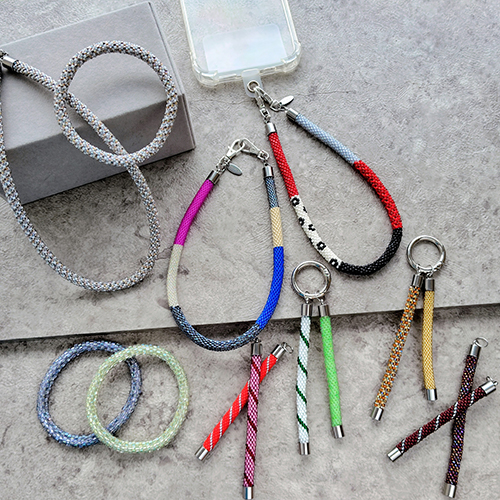グラスピーズを編み上げた高強度のアクセ・ストラップ・チャームを販売。ブレスは2本で10%OFF!カラフルなチャームは組み合わせ自由で推し活にも!