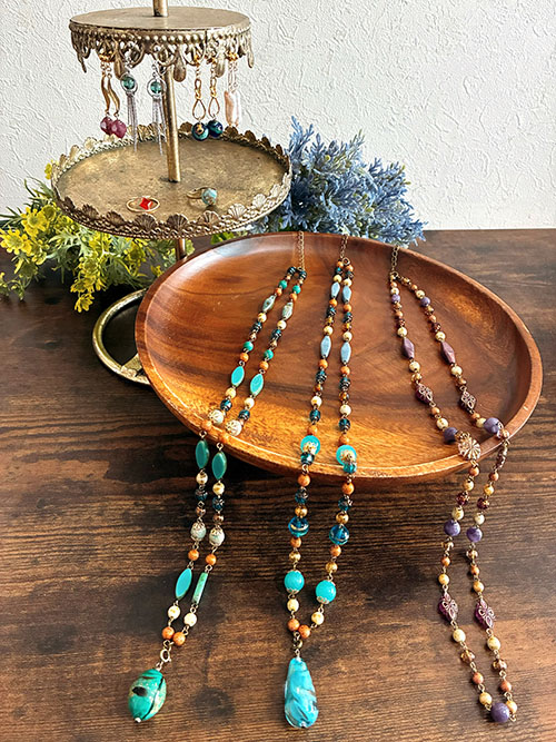 希少な欧州硝子と厳選した天然石を使用し、独創的な色合いや質感を大切にしたアクセサリー,パワーストーンの意味合いも楽しんでいただけます。